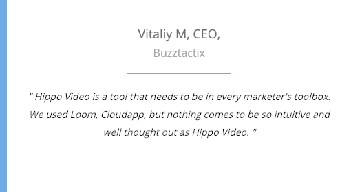 " Hippo Video is a tool that needs to be in every marketer's toolbox. We used Loom, Cloudapp, but nothing comes to be so intuitive and well thought out as Hippo Video. "