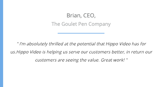 "I’m absolutely thrilled at the potential that Hippo Video has for us.Hippo Video is helping us serve our customers better, in return our customers are seeing the value. Great work! "